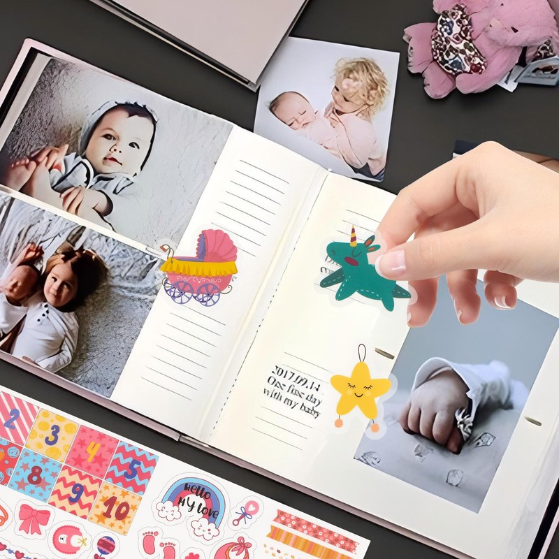- 【Wide Application】These baby scrapbook stickers have a wide range of applications and are suitable for various occasions. Decals' strong material allows you to decorate a lot of things: scrapbooking, gift wrapping, DIY greeting cards, photos, notebooks, planners, calendars, letterheads, and birthday party invitation cards. In addition, they can be affixed to books, cards, walls, toys, laptops, mobile phones, phone case, laptop, mirror, guitar, water bottle, cup, skateboard, furniture, luggage, and anywhere baby-themed fun is needed. Let your imagination run wild with these versatile and attractive stickers.