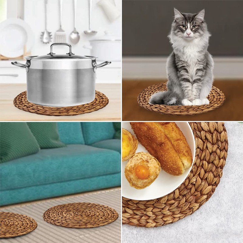 - Thick Wicker Placemats -- Round water hyacinth placemat thick enough to heat insulation and protect your precious dining table. It also has a non-slip function to protect your beloved tableware so that you can enjoy your meal.