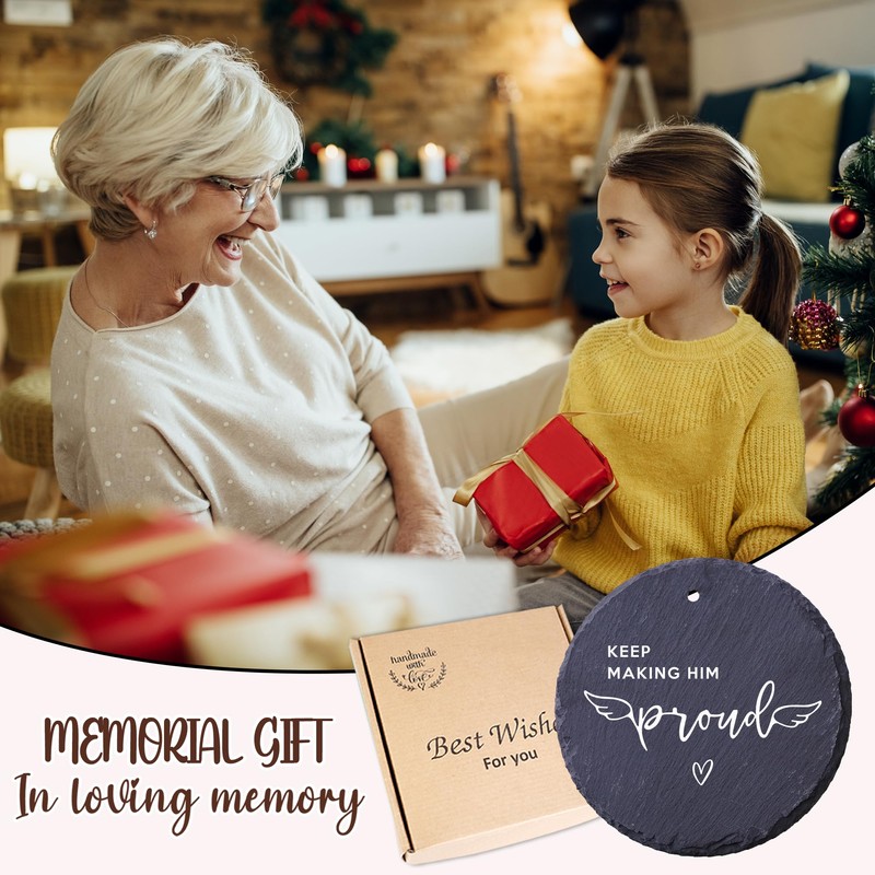4'' Stone Memorial Christmas Ornament Keep Making Him Proud Sympathy Ornament Loss Dad Grandpa Father in Law Condolences Keepsake Idea Gift Deceased Husband Son Uncle Window Xmas Hanging HOT379