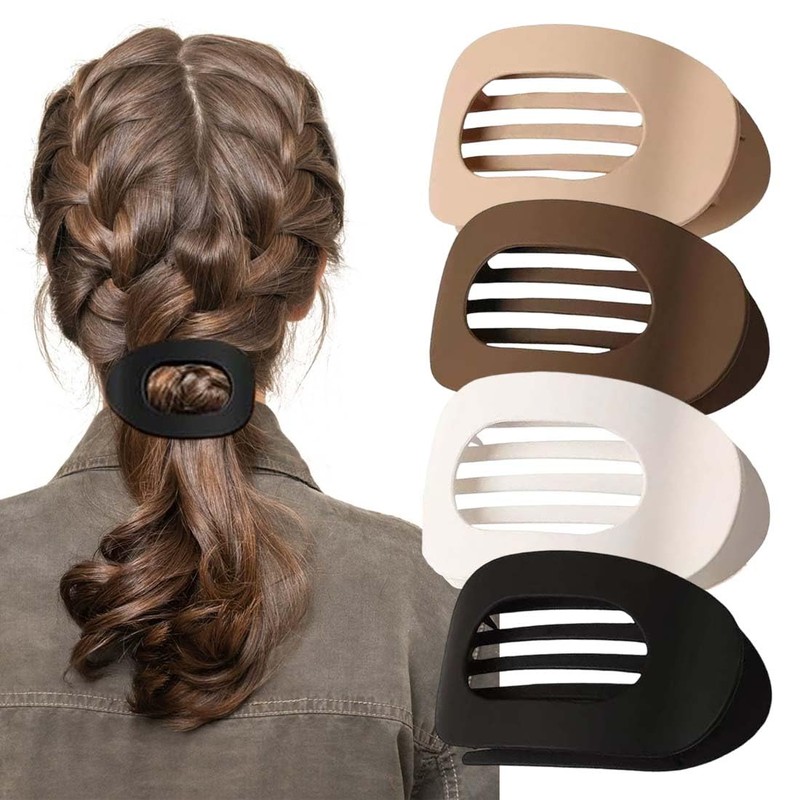 4 Stück Haarklammer Flach,starker Halt Frauen-Haarspangen Damen, matte große haarklammer für dünnes und dickes Haar, gebogenes Design für Liegen und Fahren (Neutral)