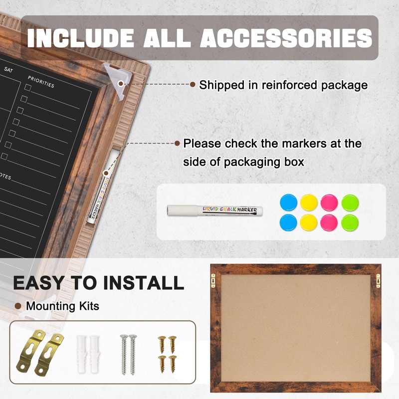 - Multiple Usages: This rustic framed blackboard calendar adorn your living space, such as kitchen, office, home, and school. You can use this magnetic chalkboard to take notes, pin notices, post photos and pictures, be a menu board, display board, notice board, and planner board