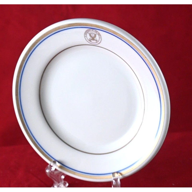 4) US Navy Officers Mess 7" Bread Plates Gold line & Crest Homer Laughlin China