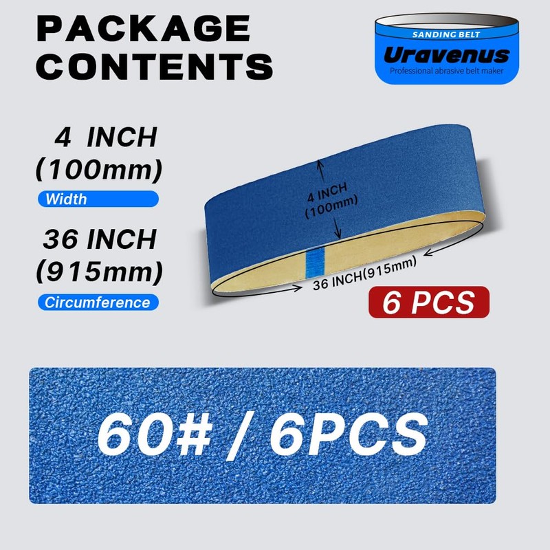 - 【Single Grit Set】: This set includes 6 pieces of 4 x 36 inch sanding belts, all in 60 grit, ideal for intermediate sanding and material smoothing in various applications.