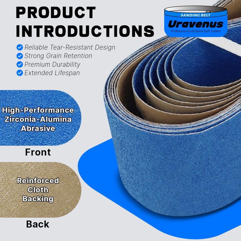 - 【Premium Zirconia Grain】: Made from high-quality zirconia grain, these sanding belts are durable, heat-resistant, and waterproof, offering improved performance over standard aluminum oxide belts.