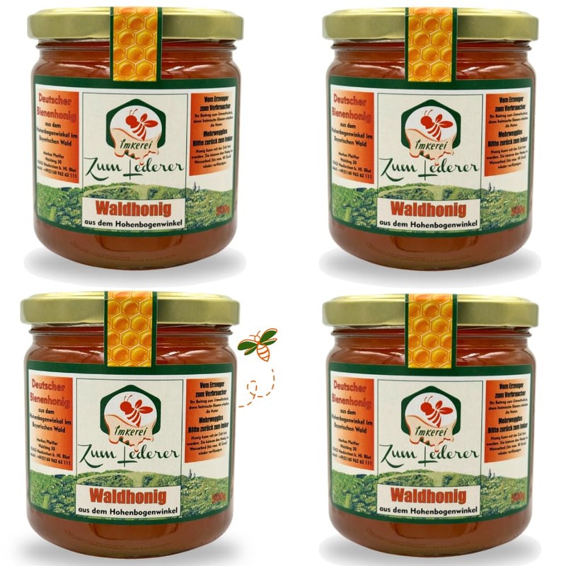 4 x 500 g, German Forest Honey - Honey Sweet Spread from the Imkerei "Zum Lederer" Families - 500 g Liquid Honey from Honeydew from the Bavarian Forest - Honey without Additives Directly from the