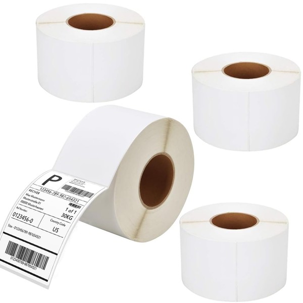 - 4 x 6 in thermal labels, 3-Inch Core, 1000 labels per roll, total 4 rolls = 4000 labels.