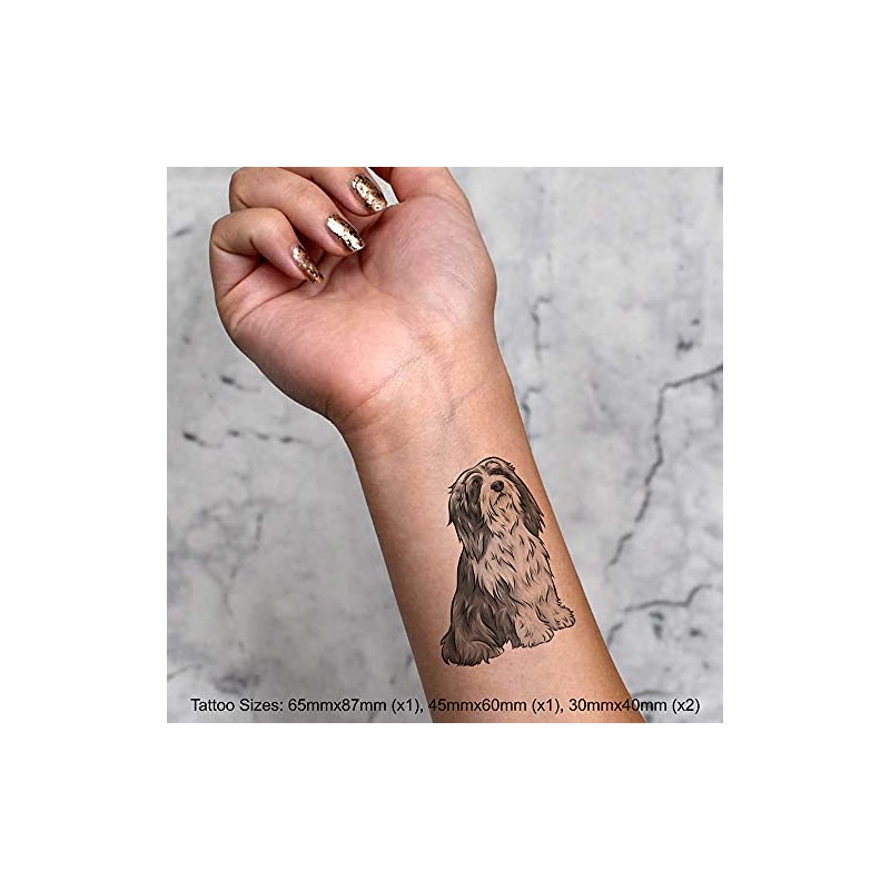 4 x 'Bearded Collie' Temporary Tattoos - Water Resistant, Skin-Safe, Non-Toxic Transfers, Mixed Sizes (TO00044845)