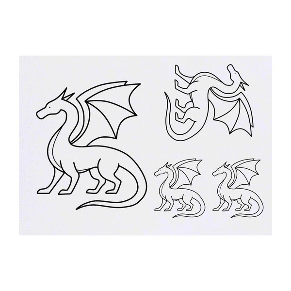 4 x 'Dragon Outline' Temporary Tattoos - Water Resistant, Skin-Safe, Non-Toxic Transfers, Mixed Sizes (TO00084780)