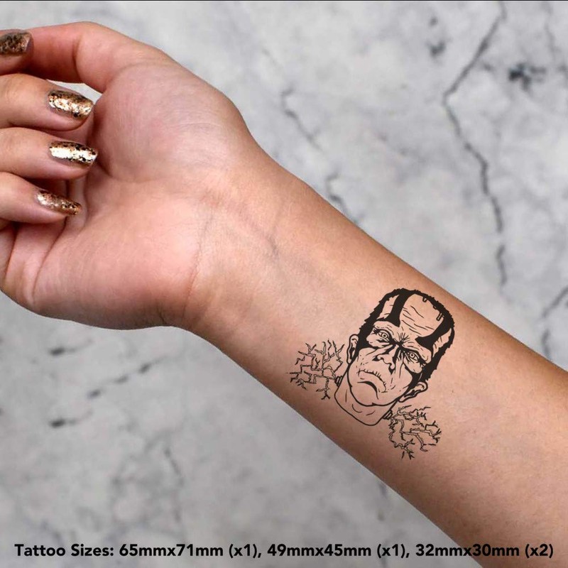 4 x 'Frankenstein's Monster' Temporary Tattoos - Water Resistant, Skin-Safe, Non-Toxic Transfers, Mixed Sizes (TO00008505)