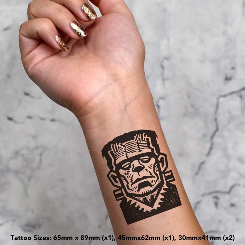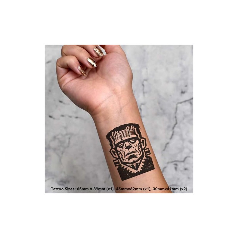 4 x 'Frankenstein's Monster' Temporary Tattoos - Water Resistant, Skin-Safe, Non-Toxic Transfers, Mixed Sizes (TO00085500)