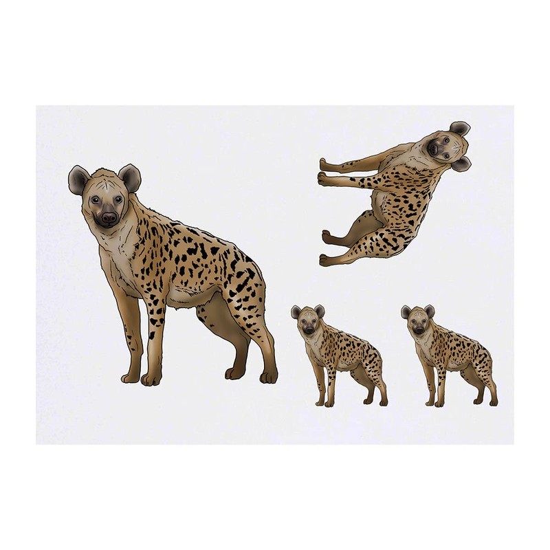 4 x 'Hyena' Temporary Tattoos - Water Resistant, Skin-Safe, Non-Toxic Transfers, Mixed Sizes (TO00042293)