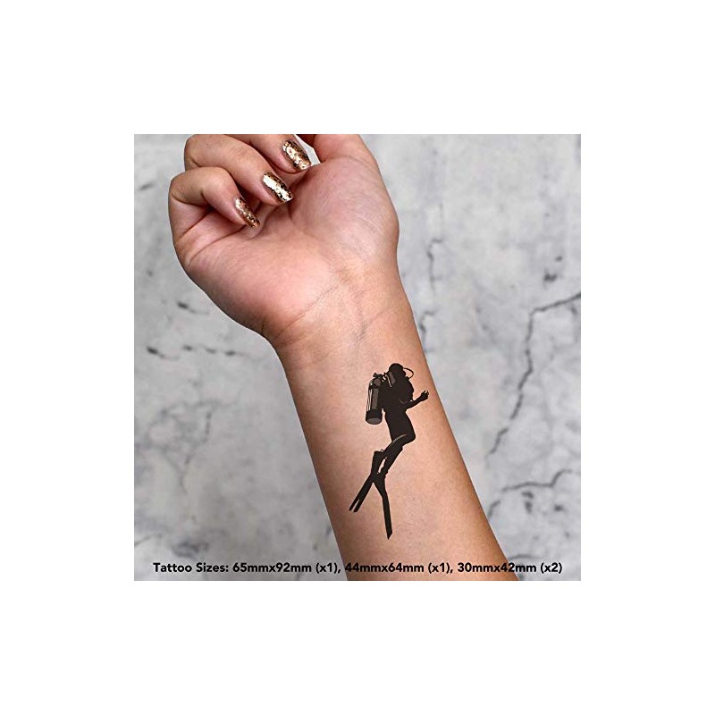 4 x 'Scuba Diver' Temporary Tattoos - Water Resistant, Skin-Safe, Non-Toxic T...