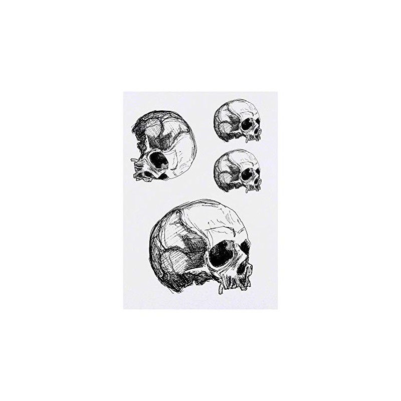 4 x 'Skull' Temporary Tattoos - Water Resistant, Skin-Safe, Non-Toxic Transfers, Mixed Sizes (TO00003287)