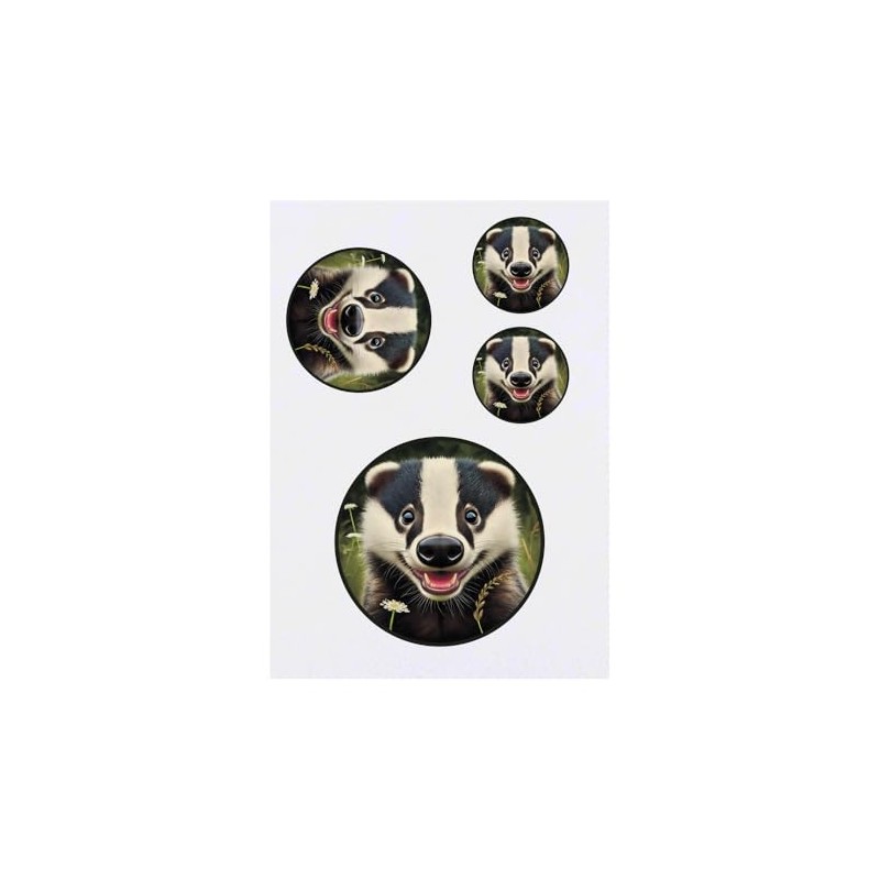 4 x 'Smiling Badger Cub' Temporary Tattoos - Water Resistant, Skin-Safe, Non-Toxic Transfers, Mixed Sizes (TO00081700)