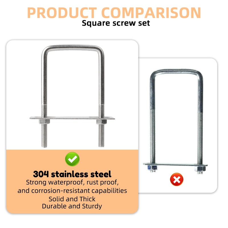 - Reliable Quality The U bolts are made of high quality stainless steel and are subject to quality inspection during manufacture. They are corrosion resistant, have high hardness and strong load capacity, and are not easily deformable. The threads are clear and burr-free. Installation is simple and requires no drilling to reach your destination