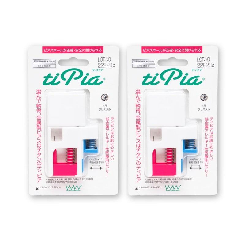ピアッサー ティピア 両耳用 医療用チタン製ピアサー 低金属アレルギー性 (4月クリスタル×2(両耳用))
