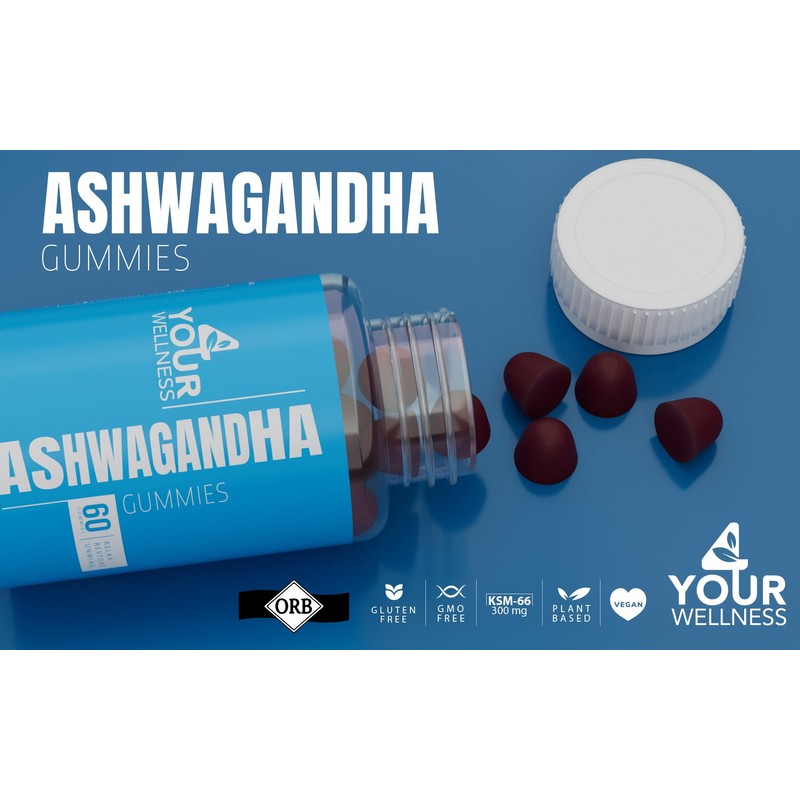 4 Your Wellness 4 Your Wellness Ashwagandha Gummies Mixed Berry KSM-66, Lion's Mane, Vitamin-D, Non-GMO, Gluten-Free, Gelatin Free & Kosher | for Daily Focus Boost (60 Count (Pack of 1))