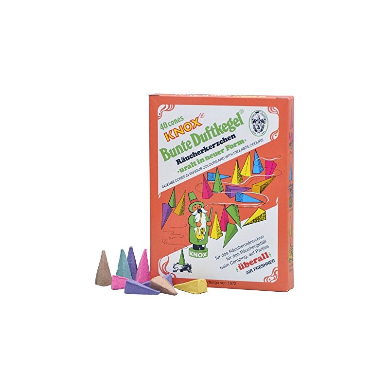 '40 original Knox Incense cones – coloured cones – "Retro Design By 1972 for incense smoker incense burner, Camping, party anywhere you want to put incense sticks