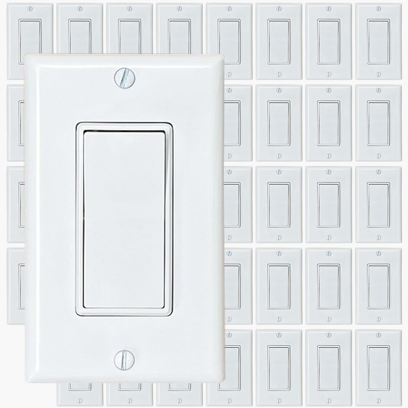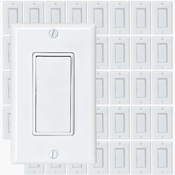 [40-Pack] PROCURU Decorator Paddle Rocker Light Switch, Single Pole, 3-Wire, Grounding 15A 120V-277V, White, UL Certified, Includes Wall Plate Covers