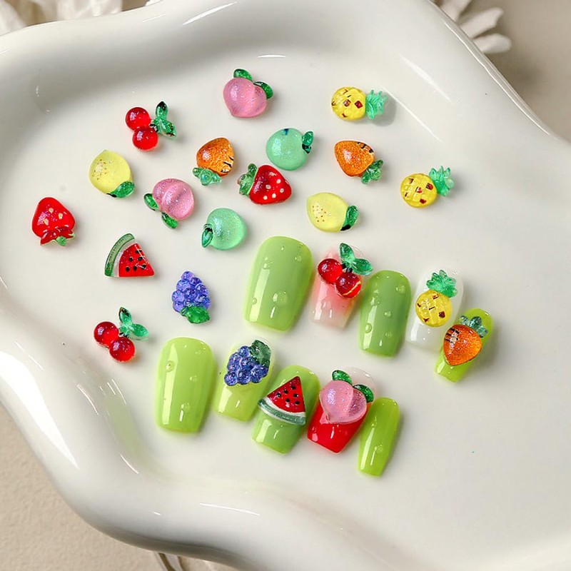 - 40 PCS Cute Fruit Nails Charms 3D Resin Fruit Nail Art Supplies for Acrylic Nails, DIY Nail Art Decoration