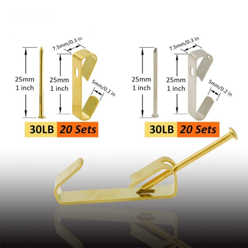 • Package include:40 sets of picture hooks with nails , 20 sets silver and 20 sets gold;