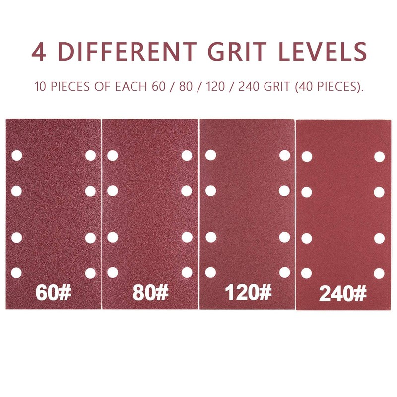 40 Piece Sandpaper Sanding Sheets Set Grit 60 80 120 240 8 Holes Sanding Sheet Set for Orbital Sanders Wood and Paint 95 x 185 mm