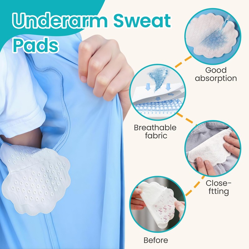 - Jedes Achselpad besteht aus hochsaugfähigem Material, das Schweiß effektiv aufnimmt, die Achseln trocken hält und Schweißflecken sowie Gerüche verhindert.