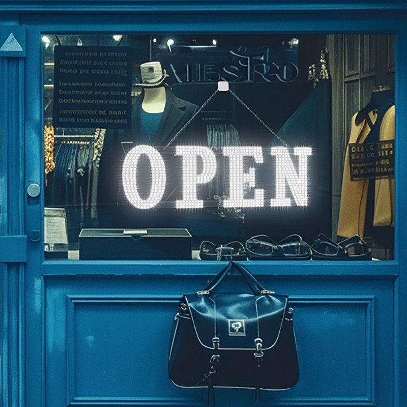 - High Visibility Reach – Equipped with 783 ultra-bright white LEDs, this LED open sign remains visible from up to 450 meters away, making it easy to attract attention even in broad daylight