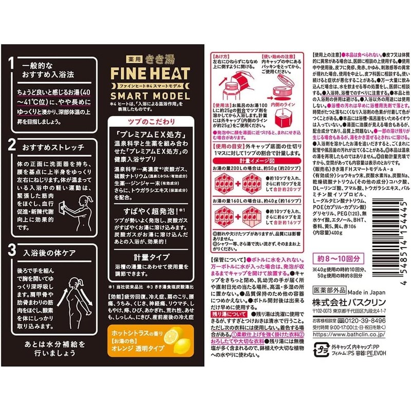 【医薬部外品】きき湯 炭酸 入浴剤 ファインヒート スマートモデル ホットシトラス 400g 超発泡タイプ 400グラム (x 1)