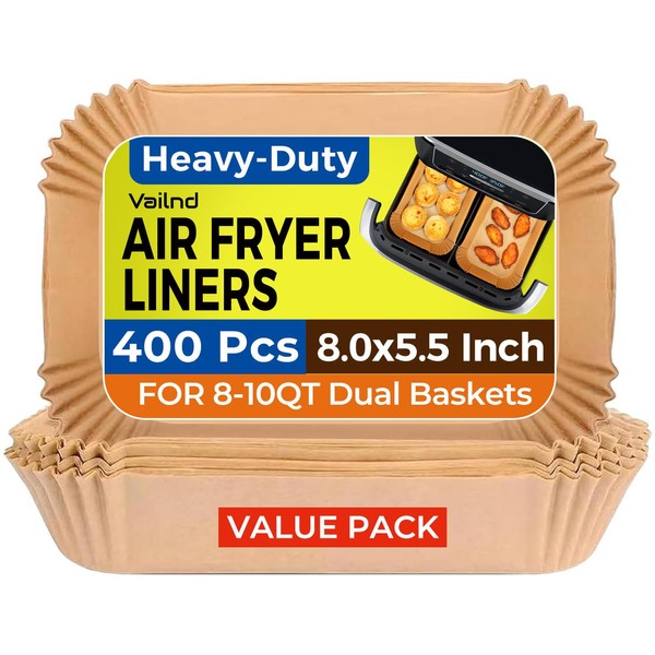400Pcs Air Fryer Liners Disposable for Dual Basket, 8x5.5 Inch Parchment Pape...