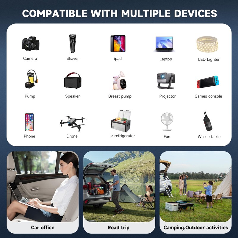 • 【Built to Last and More Safety】The aluminum alloy housing provides sturdy housing protection and effectively dissipates heat, ensuring efficient operation for a long time. Built-in advanced MCU intelligent chips, automatically identify the voltage and current required by different devices, preventing machine overheating, undervoltage, overcurrent, overvoltage, overload, and short circuits.