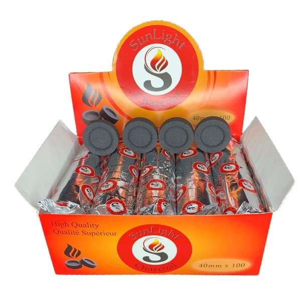 - BIGGER IS BETTER: Sunlight Charcoal's NEW 40mm size. Each one of these charcoal discs is much larger than the 33mm. They offer a wider surface area, providing a longer burn time and more space to put incense.