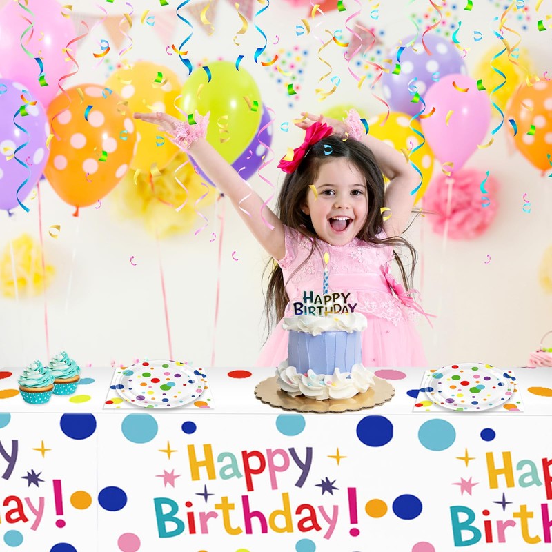- Elegant Design:This polka dot birthday decorations has seven colors of red,orange,yellow,green,blue,and purple,intertwined into the most gorgeous picture,just like the immortal innocence and dreams in our hearts.In this birthday decorations,let us temporarily forget our worries,embrace the colors,and release ourselves.This is not only a party,but also a baptism of the soul,a shared memory of love and beauty.