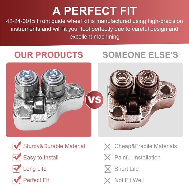 - 42-24-0015 Front guide wheel kit is manufactured using high-precision instruments and will fit your tool perfectly due to careful design and excellent machining