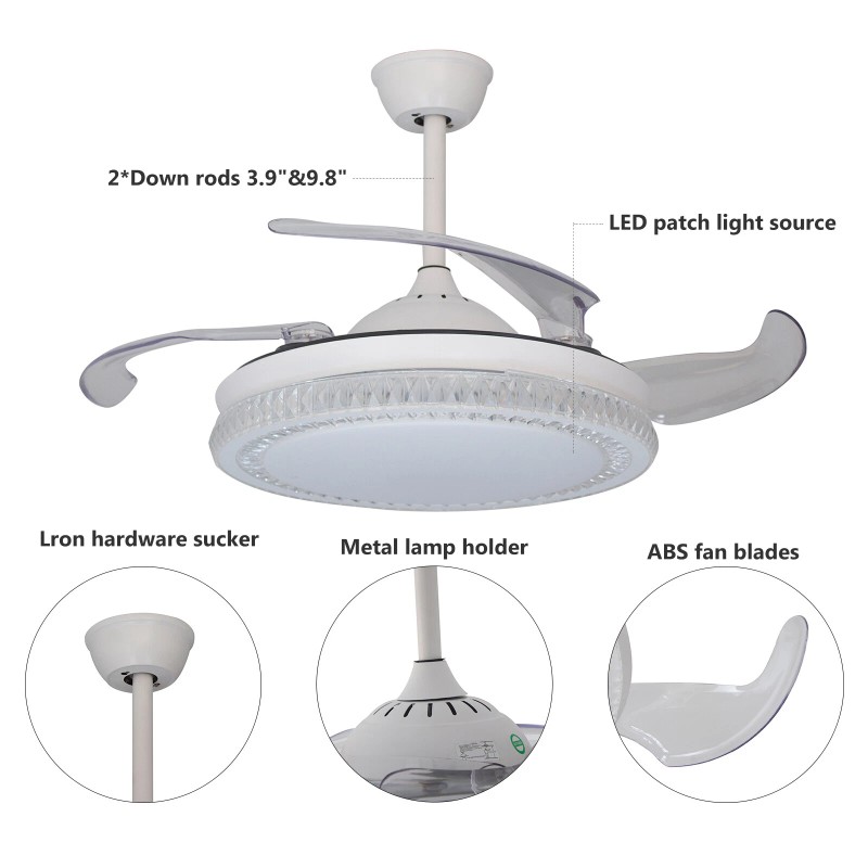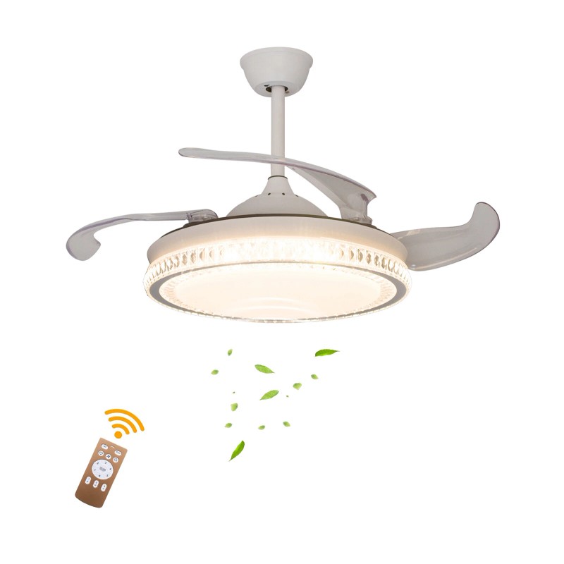 42" 36W Ceiling Fan Light 3-Color Retractable Blades Fan Lamp & Remote Control