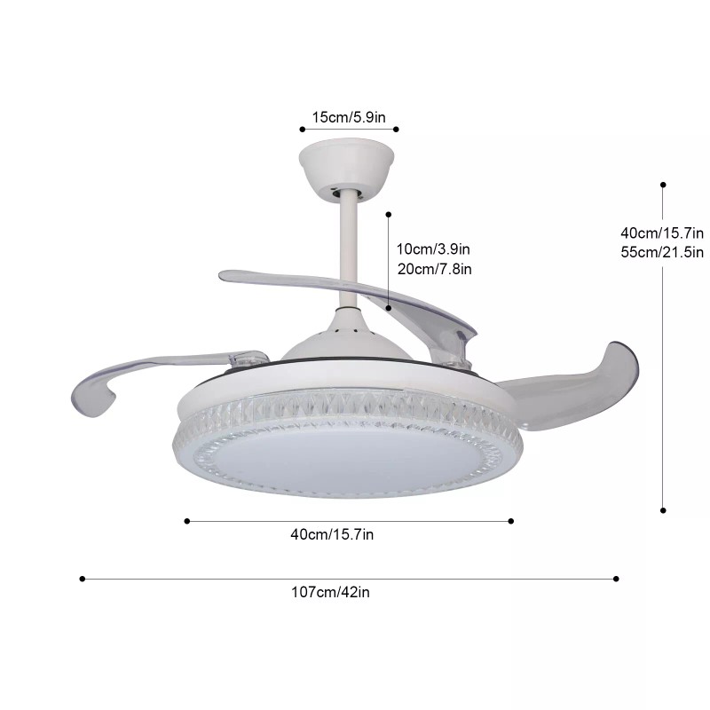 42" Ceiling Fan Light Fan Chandelier 6 Gears Wind Speed with Remote Control