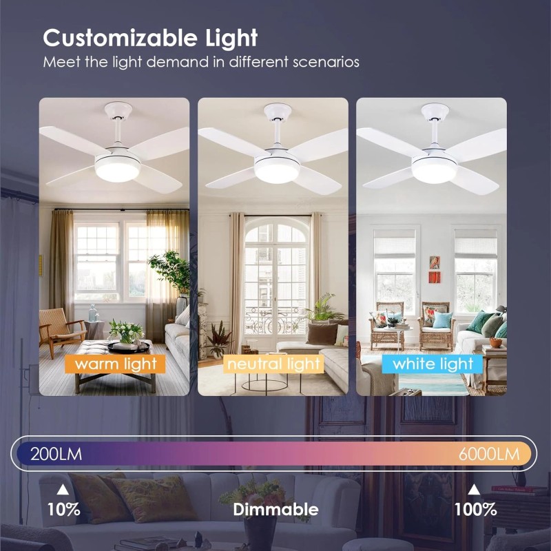 - Memory Function: Our white fan light has a built-in memory function that remembers and restores your previous light settings, ensuring you always have your desired lighting when you turn it on. Note: Memory function only works with remote control or app switch, not compatible with wall switch.