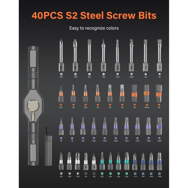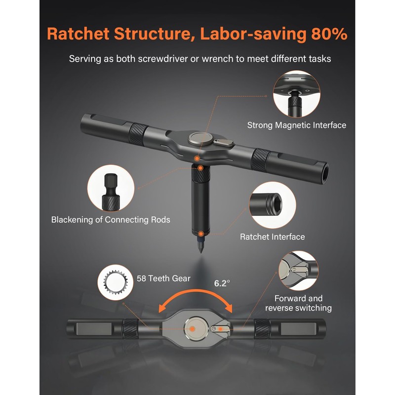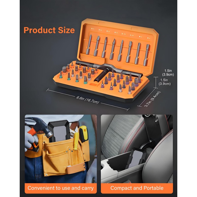 - 42 in 1 Magnetic Screwdriver Set, Ratchet Screwdriver Set, Multi Bit Drive Set with Detachable Ratchet Handle, Portable Compact DIY Repair Tool Kit for Furniture, Bicycle, Computer, Orange