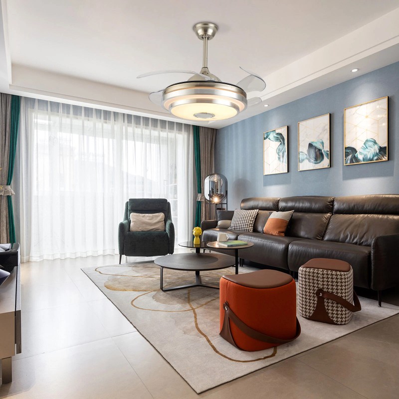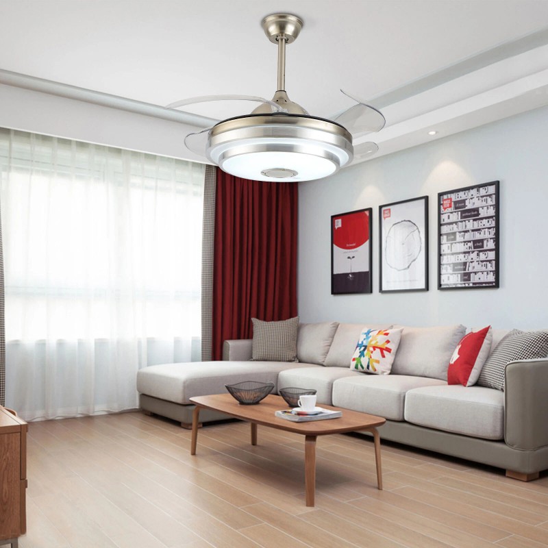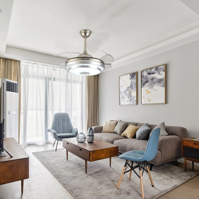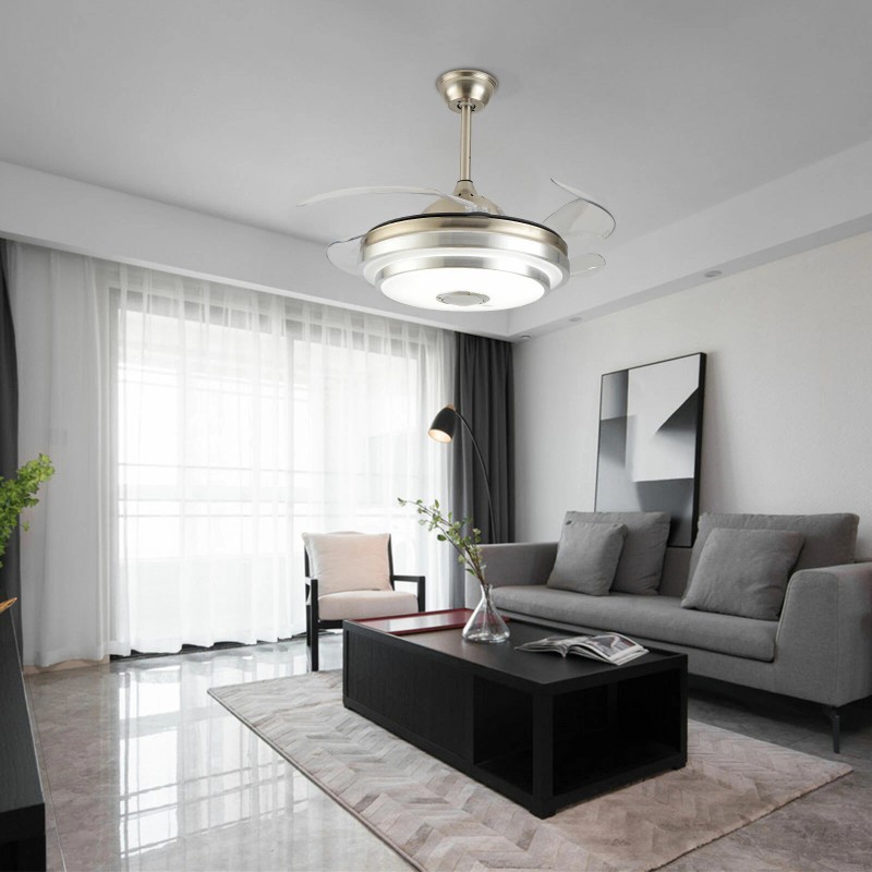 42" Invisible Ceiling Fan Light 7 Color LED Bluetooth Player 3 Speed Timing w/RC