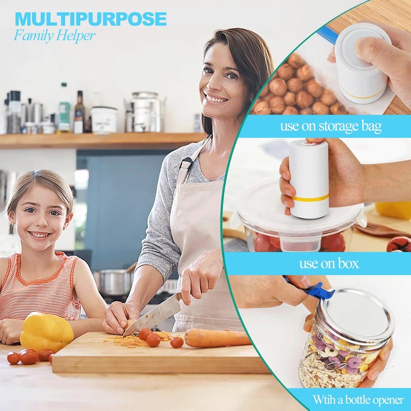 - โ ๐ ๐ซ๐๐ฌ๐ก Saver ๐๐ง๐ ๐๐จ๐ง๐ -๐ฅ๐๐ฌ๐ญ๐ข๐ง๐ : Your food can last up to 3-5 times longer with minimal effort! You can quickly and easily remove the air from mason jars to create a vacuum seal, which makes the vacuum sealer for jars ideal for storing pickles, salads, jams, and more.