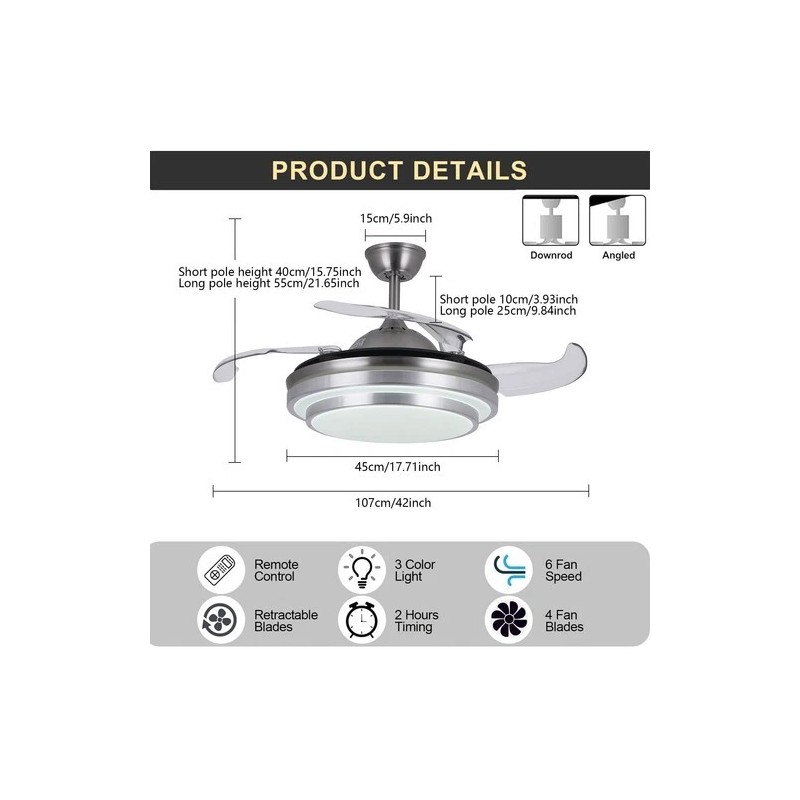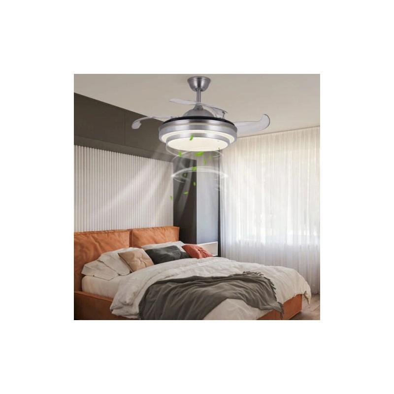42" Retractable Ceiling Fan Lamp Dimmable LED Chandelier w/ Light Remote Control