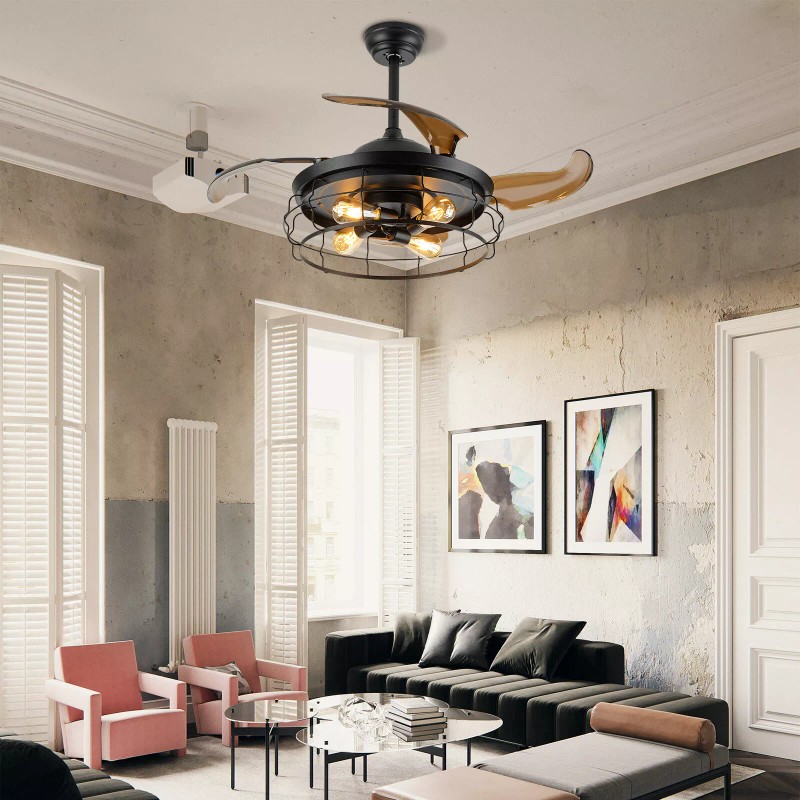 42'' Rustic Ceiling Fan Light Remote Control Chandelier Retractable Blades Lamp