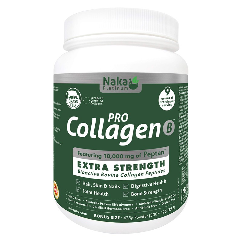 425gr Powder Naka Platinum Hydrolyzed Bovine Collagen Peptides Protein featuring 10,000 mg of Peptan, Better Absorption, Grass Fed, Extra Strength. For Skin, Nails, Bones and Joints, Non GMO, Unflavoured