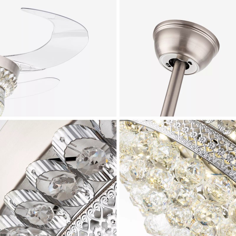 42in 3-Speed Crystal Chandelier LED Ceiling Fan Light Pendant Lamp with Remote