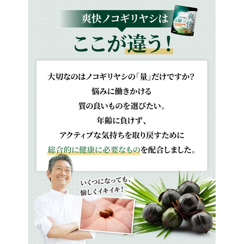 爽快ノコギリヤシ430 ユリナック サプリメント 亜鉛 長命草 トマトリコピン DHA・EPA配合 60粒 30日分 (2)