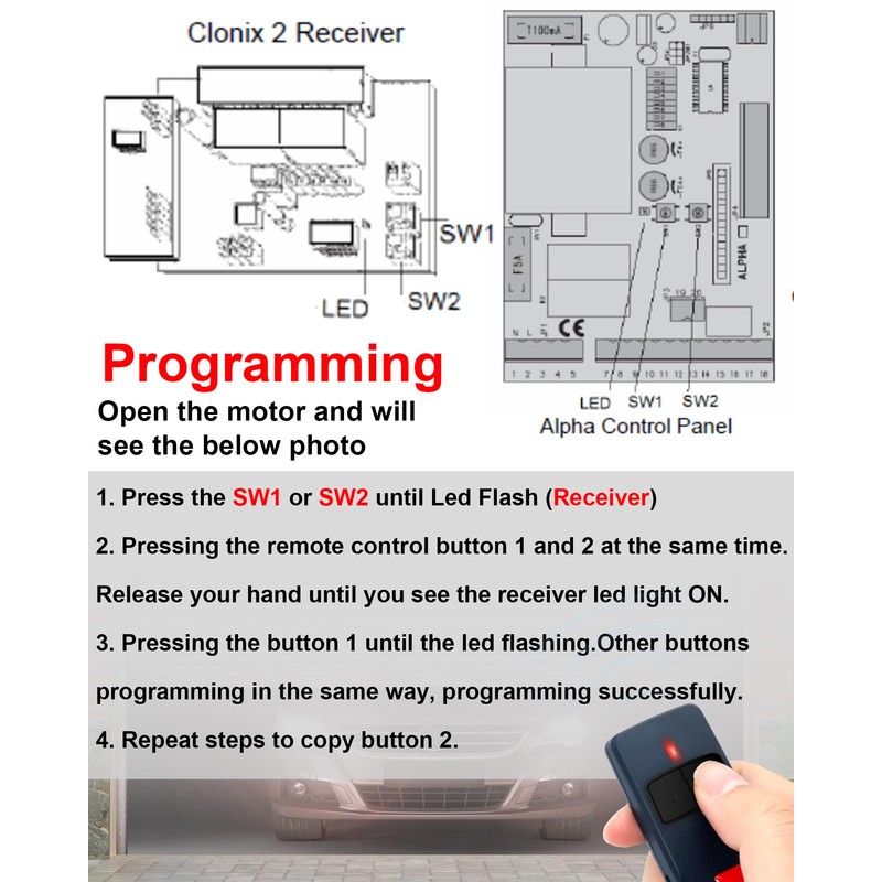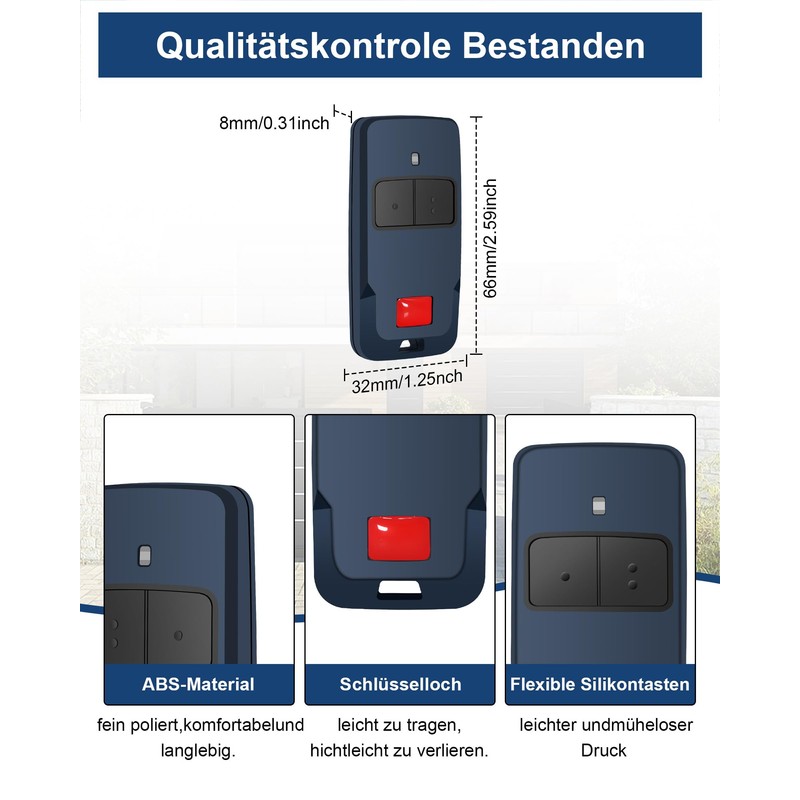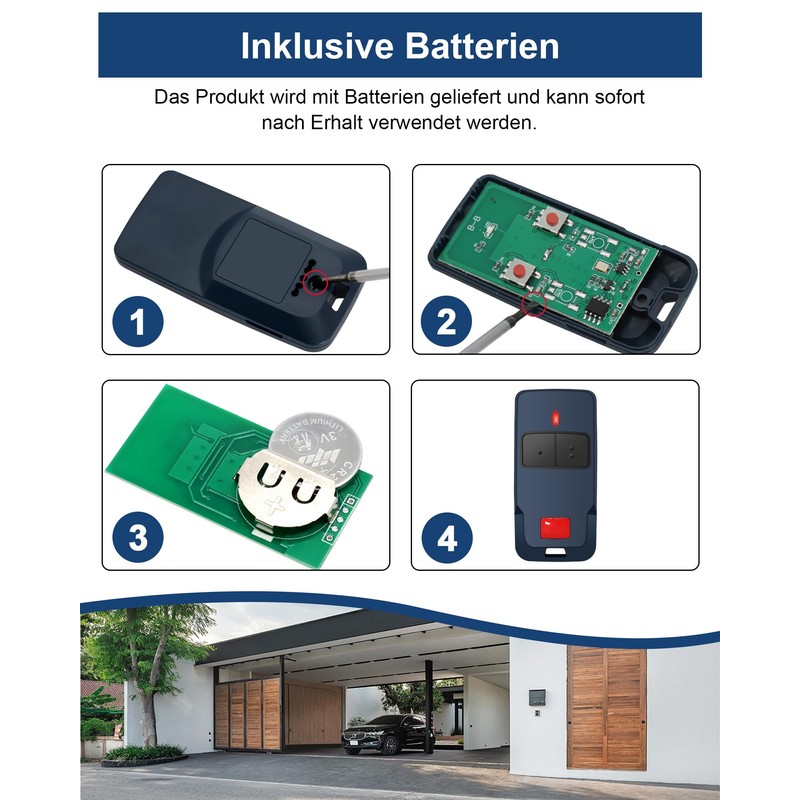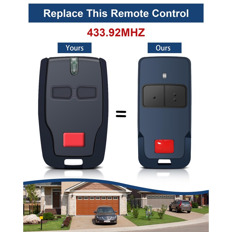 - Frequency: 433MHz, Transmission distance: 50-100 m. 2 buttons to control up to 2 garage door openers. The remote comes with batteries and is ready to use immediately upon receipt, making it a perfect replacement.