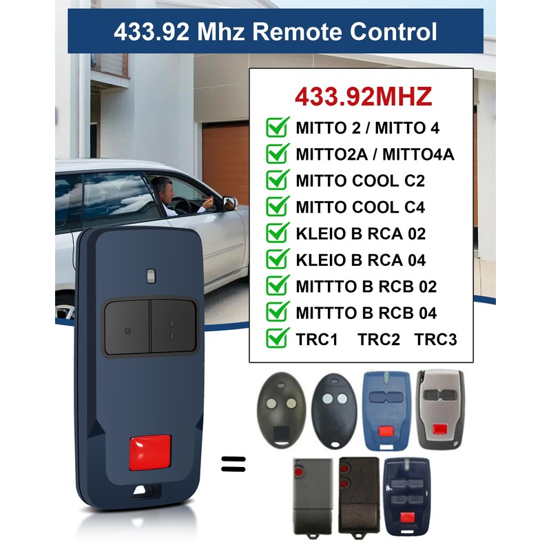 433 MHz Remote Control Transmitter for Mitto Cool C2 C4, Mitto 2 | Mitto 4 | Mitto 2A | Mitto 4A, Mitto B RCB 02/04, TRC1, TRC2, TRC3, Rolling Code, 2 Channels Remote Control (2 Pieces)