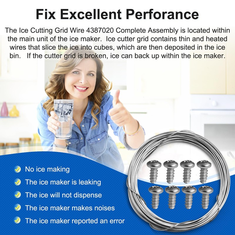 - 【Assured product】The 4387020 refrigerator ice machine wire cutting kit includes 1× ice cutting grid wire and 8× screws. We have a professional team, you are entitled to a product Service lasting 3 years. If you have any questions about 4387020 icemaker cutting grid wire kit, please let us answer