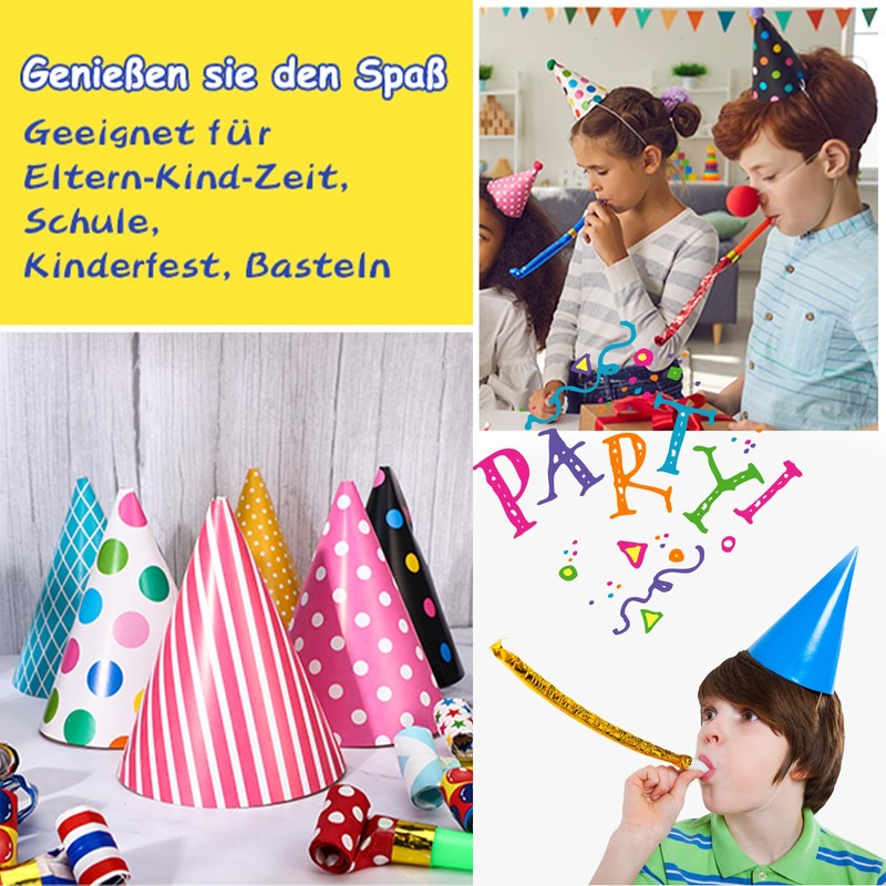 - Great value set: our party hats children's birthday set includes: 22 party hats with and 22 party blowers. Colourful and create a cheerful party environment and atmosphere.
