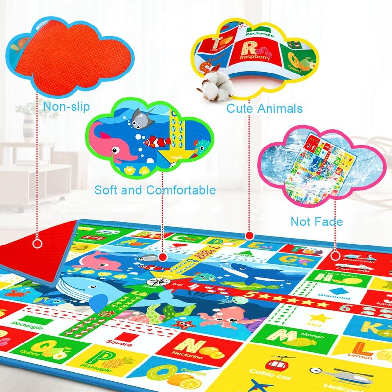 - 【ABC Playmat for Babies】Our play mat for baby design with bright colors can stimulate children's inner curiosity, provides learning in interactive way. Crawling mat can trigger interest in learning, and promote development of the brain. Not only fashionable and beautiful, but also very educational. Baby game mats can help children play games, recognize marine life, as well as fruits, numbers, and letters, thereby stimulating children's creativity and imagination!